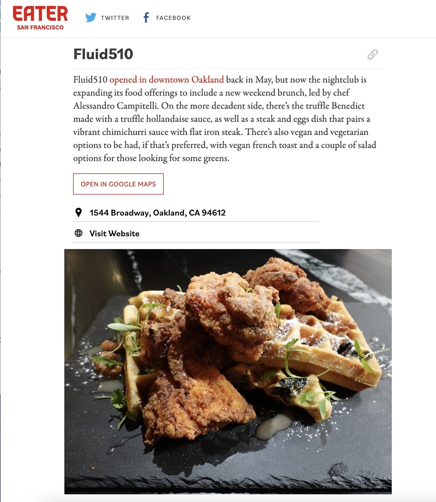 Fluid510 was covered by over 34 tier-one food and beverage and local business media, including San Francisco Chronicle (Anne Schrager), SF Gate (Sam Moore), Bar & Restaurant (Aaron Keil), Bay Area Reporter (Cynthia Laird, Jim Provenzano and Heather Cassell), San Francisco Business Journal (Alex Barreira), Oaklandside (Brandy Collins and Joanna Della Penna), Eater SF (Dianne de Guzman) and KPIX-TV (CBS).